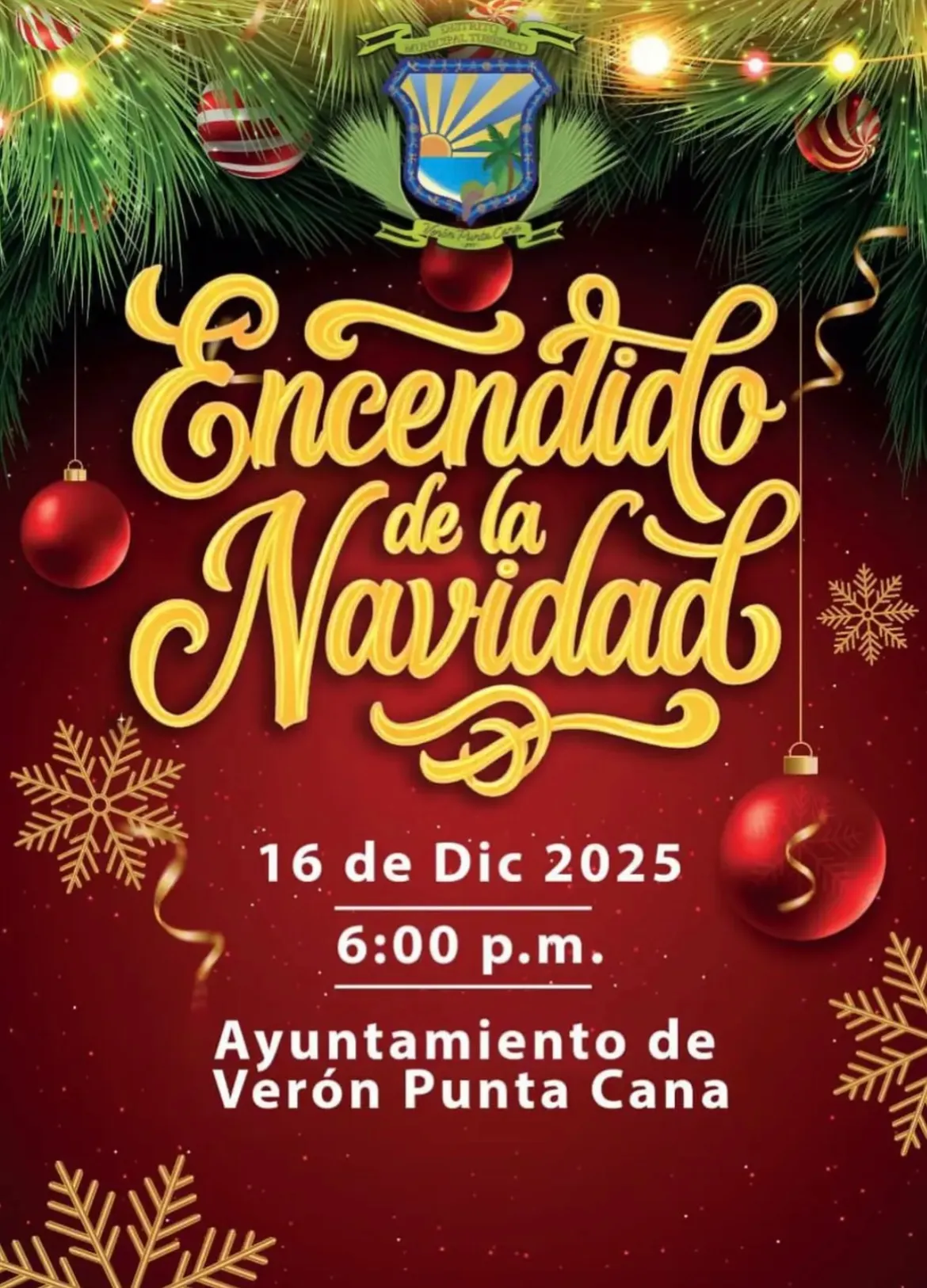 Verón–Punta Cana. – The Verón–Punta Cana City Council will host its much-anticipated Grand Christmas Lighting this Monday, December 16, at 6:00 p.m., an annual family event that officially opens the holiday season in the community.